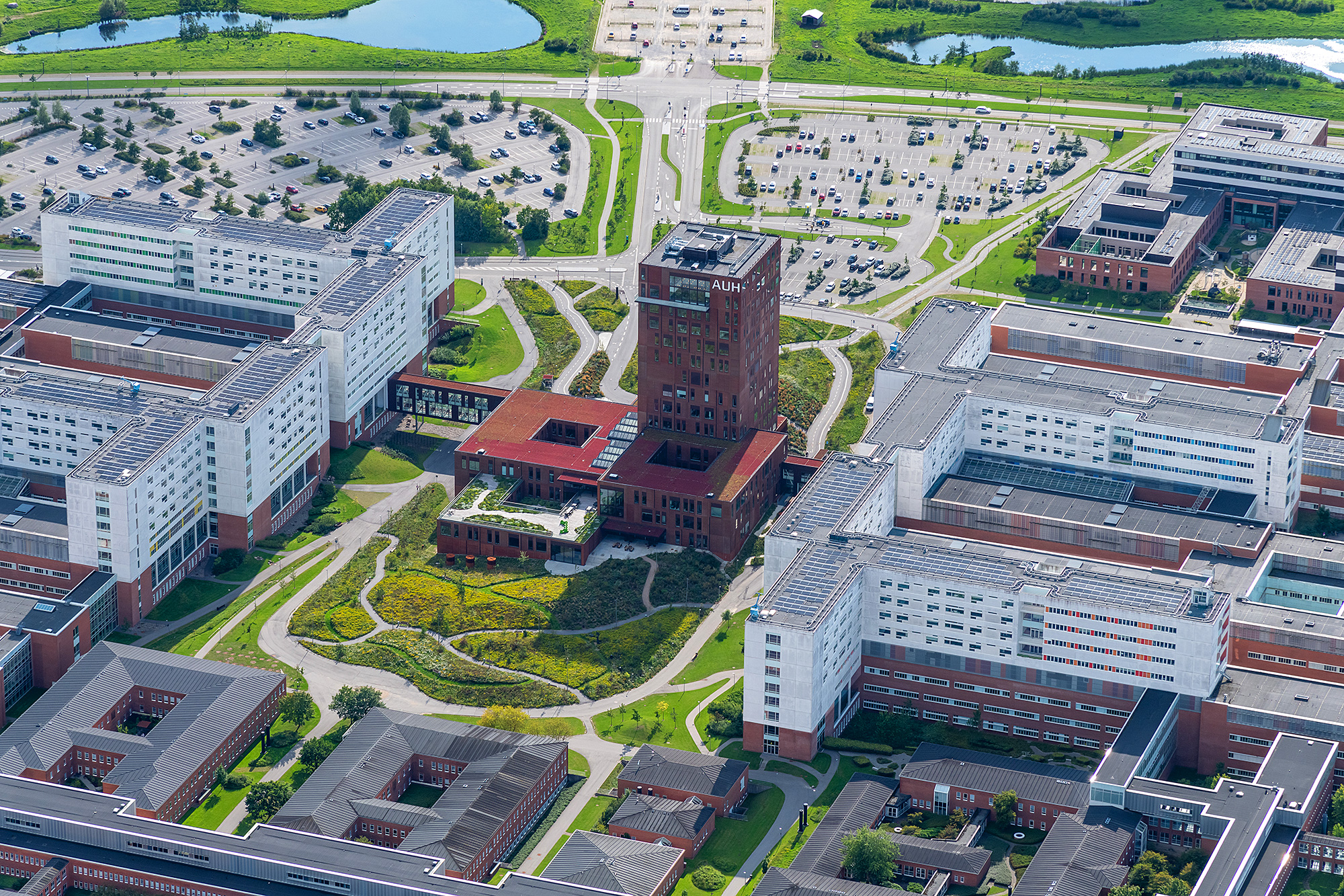 Aarhus University Hospital (AUH) develops and provides highly specialised treatment, research, and education that is driven by three core values: dialogue, competence and boldness. This state-of-the-art Danish teaching hospital consists of 53 departments, employing more than 10,000 full-time staff and performing over 82,000 surgeries per year. The hospital provides specialised treatment to people from all over Denmark, and local treatment to residents of Aarhus, with annual outpatient visits approaching 1 million per year.